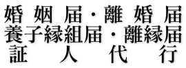 婚姻届や離婚届、養子縁組届や離縁届には、成人(18歳以上)2人の証人が必要です。様々なご事情で親族や友人知人に証人を頼みづらいなどと言った場合、当事務所の行政書士と信頼できる者が証人となります。行政書士法の守秘義務のもと、ご依頼者様の秘密は厳守されます。 |